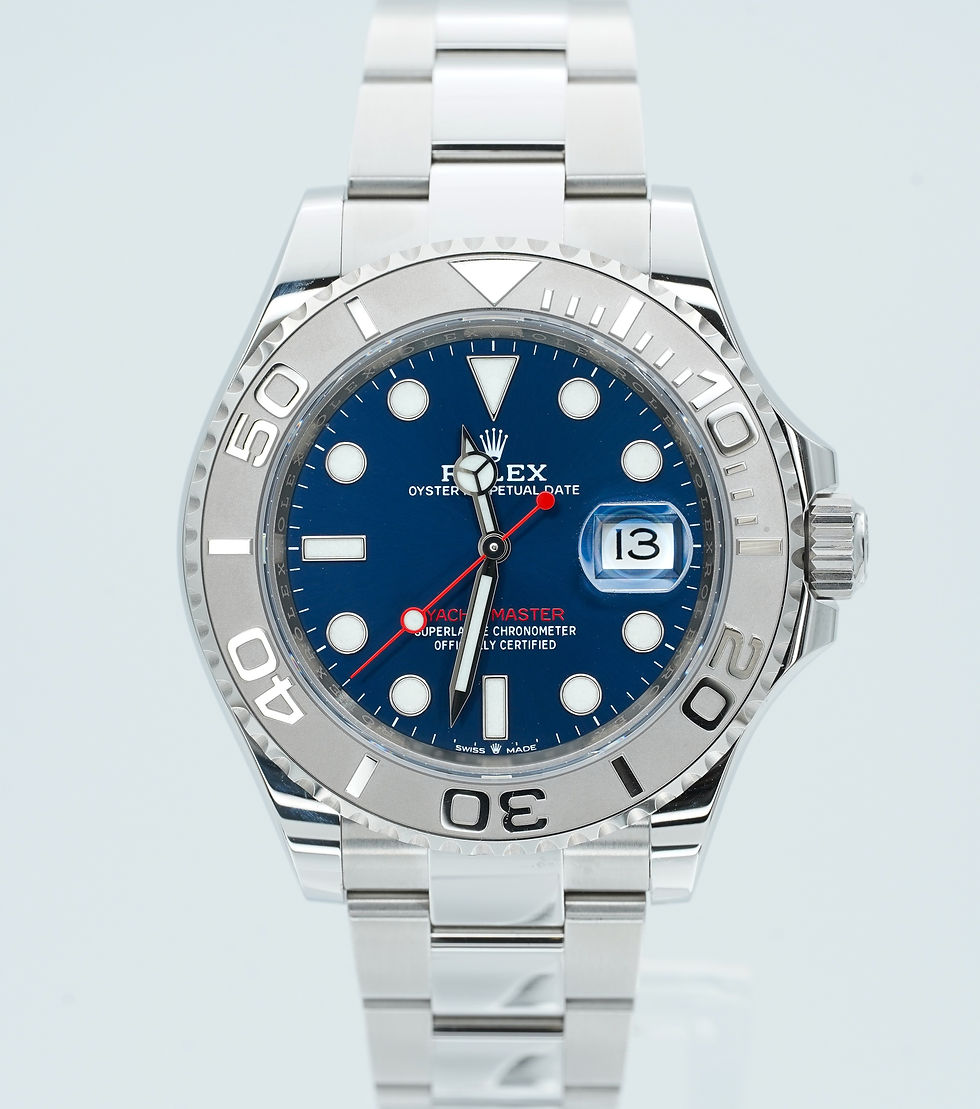 This beautiful timepiece comes with the outer black box, inner black wooden box, (it is missing the top part which holds the watch) Inner travel roll,(Shows wear, almost all of them do) guarantee papers, passport booklet, certificate, hangtag, USB, and 3 total straps. Stainless Steel, Rubber, and the black Alligator which has never been worn. This classic timepiece is powered by the historical calibre 5100 movement. The watch is in nice pre-owned condition. The watch on stainless band will accommodate up to a 7.75” wrist and larger on rubber and alligator. The watch shows some typical light cosmetic swirls on the case. We are leaving in its unpolished condition and will let the future buyer decide if they want it polished or not. Mechanically the watch is functioning as it should. Serial # and names are blurred for privacy reasons.