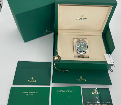 This beautiful timepiece is brand new and comes complete with the outer white sleeve, outer green box, inner green wave box, instruction manuals, both hangtags, all links and the warrant card (dated in April 2025). The watch is in brand new condition and was not sized at the time of purchase. Everything Is functioning as it should. The crystal is clean with no nicks or scratches. Do not miss your chance to own this classic timepiece. Serial numbers and names are blurred in photos only for privacy reasons.