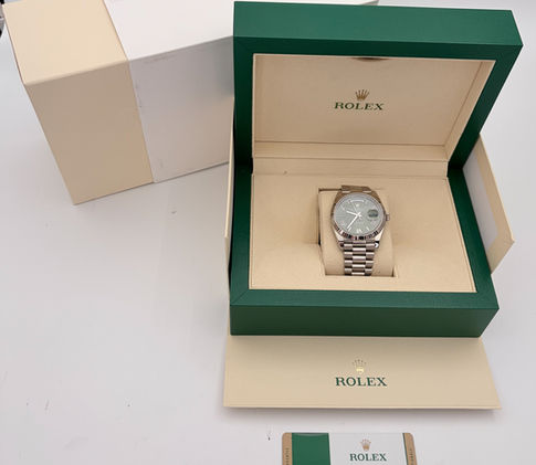 Rolex Day-Date President 228239 40mm OLIVE dial 18K White Gold Box/Papers!