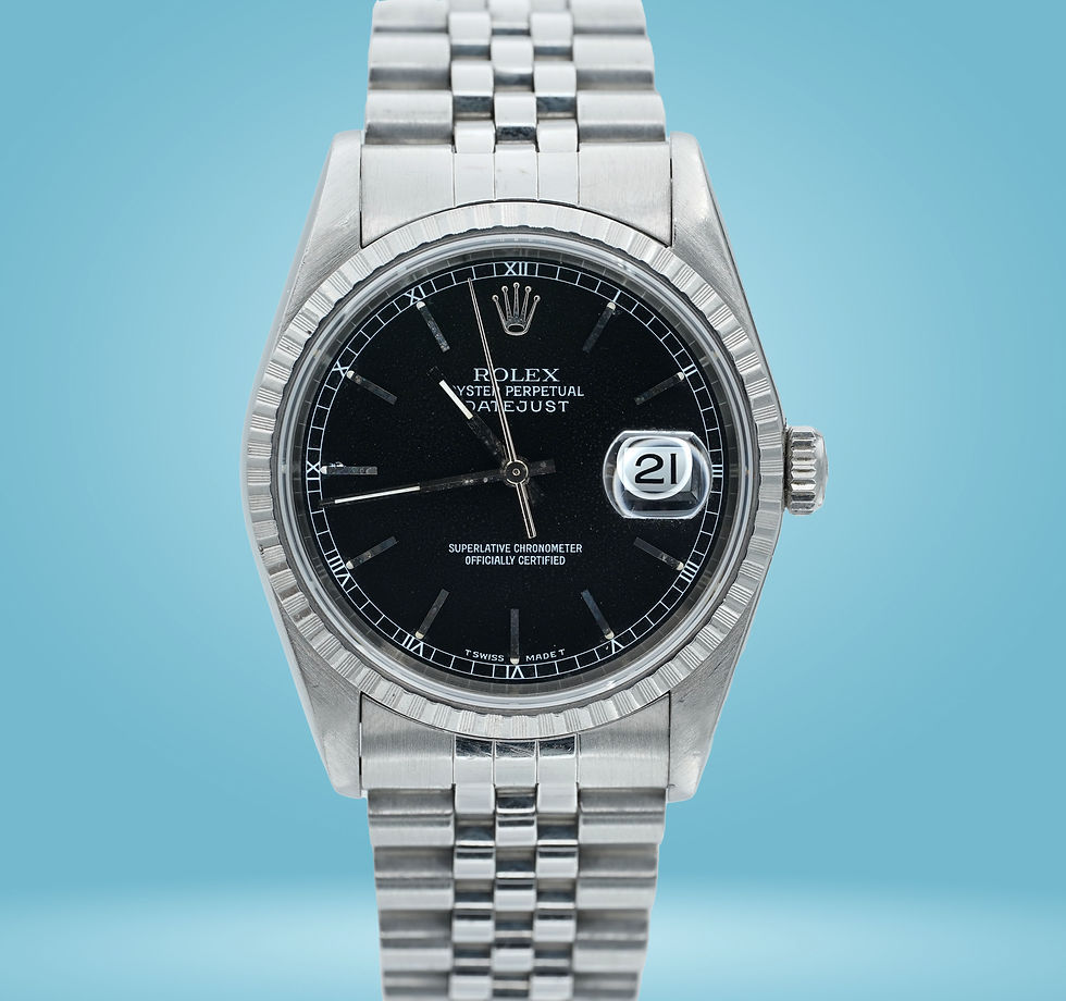 Rolex Datejust 16220 Black Dial 36mm Stainless Steel NO Holes Case!